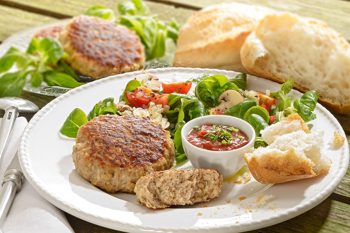 bestes Fleisch, hochwertige Naturgewürze, Kräuter und frische Zutaten.