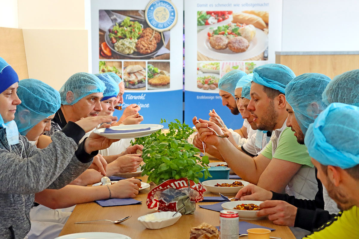 Darum setzen wir auf erfahrene Fachkräfte, die sorgfältig eingearbeitet und regelmäßig geschult werden. Unterstützt werden sie durch moderne Maschinen. Das Zusammenspiel aus innerbetrieblicher Transporttechnik und neuester Ausstattung sorgen für hohe Effizienz und optimale hygienische Bedingungen.